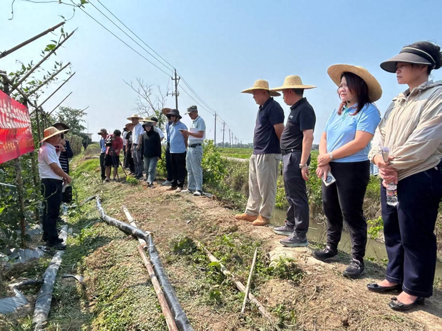 本次观摩会由国家大宗蔬菜产业技术体系海南综合试验站、海南省冬季瓜菜产业技术体系、海南省农业科学院蔬菜研究所联合海南大学、海口市农业技术推广中心共同主办。海南省农业农村厅代表、各市县农技中心负责人、一线技术人员及种植企业、农户代表等40余人深入田间,实地考察了单排架模式下豇豆的长势,详细了解其在改善田间微环境、便利农事操作及综合防控病虫害方面的优势。